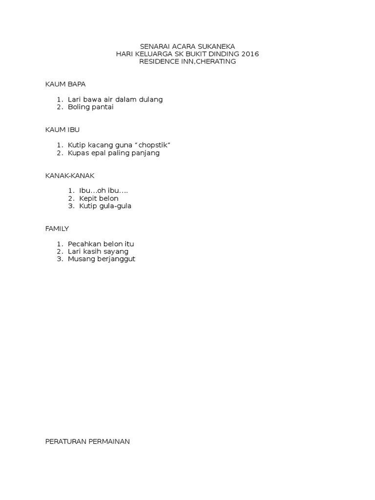 Permainan Hari Keluarga / Pat Bahasa Indonesia Kelompok 2 Worksheet. 10 idea sukaneka hari keluarga. Jarang sekali kita kita berasa bosan pada hari sukaneka. Tiup belon, duduk sampai pecah. Ape lagi kome cer tgk! Sama je macam indoor game tadi. Hadiah sukaneka hari keluarga toman.